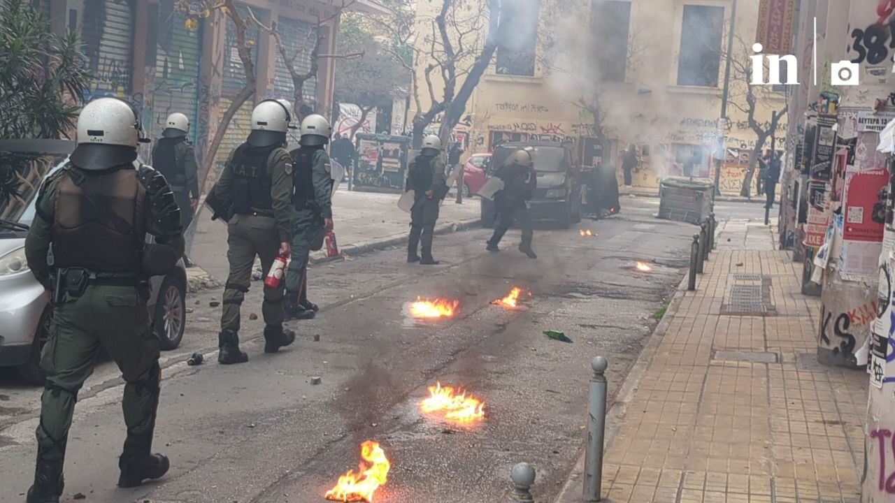 Τα επεισόδια επεκτάθηκαν αργότερα στην Πατησίων όπου άγνωστοι πέταξαν μολότοφ, με την αστυνομία να απαντά με χημικά και κρότο λάμψης ενώ προχώρησε σε προσαγωγές.