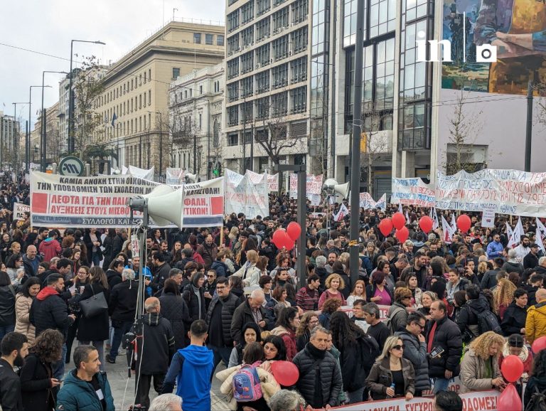 Παράλληλα πορεία πραγματοποιούν αυτή την ώρα στην Πανεπιστημίου δεκάδες σωματεία, ομοσπονδίες, εργατικά κέντρα και συνδικάτα με κεντρικό σύνθημα «Ή τα κέρδη τους ή οι ζωές μας».