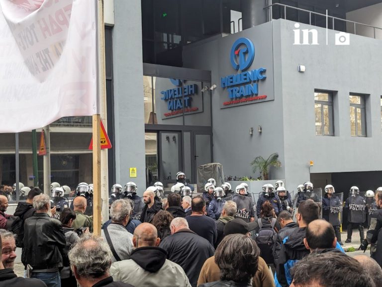 13:23 Ισχυρές αστυνομικές δυνάμεις μπροστά από τα γραφεία της Hellenic Train