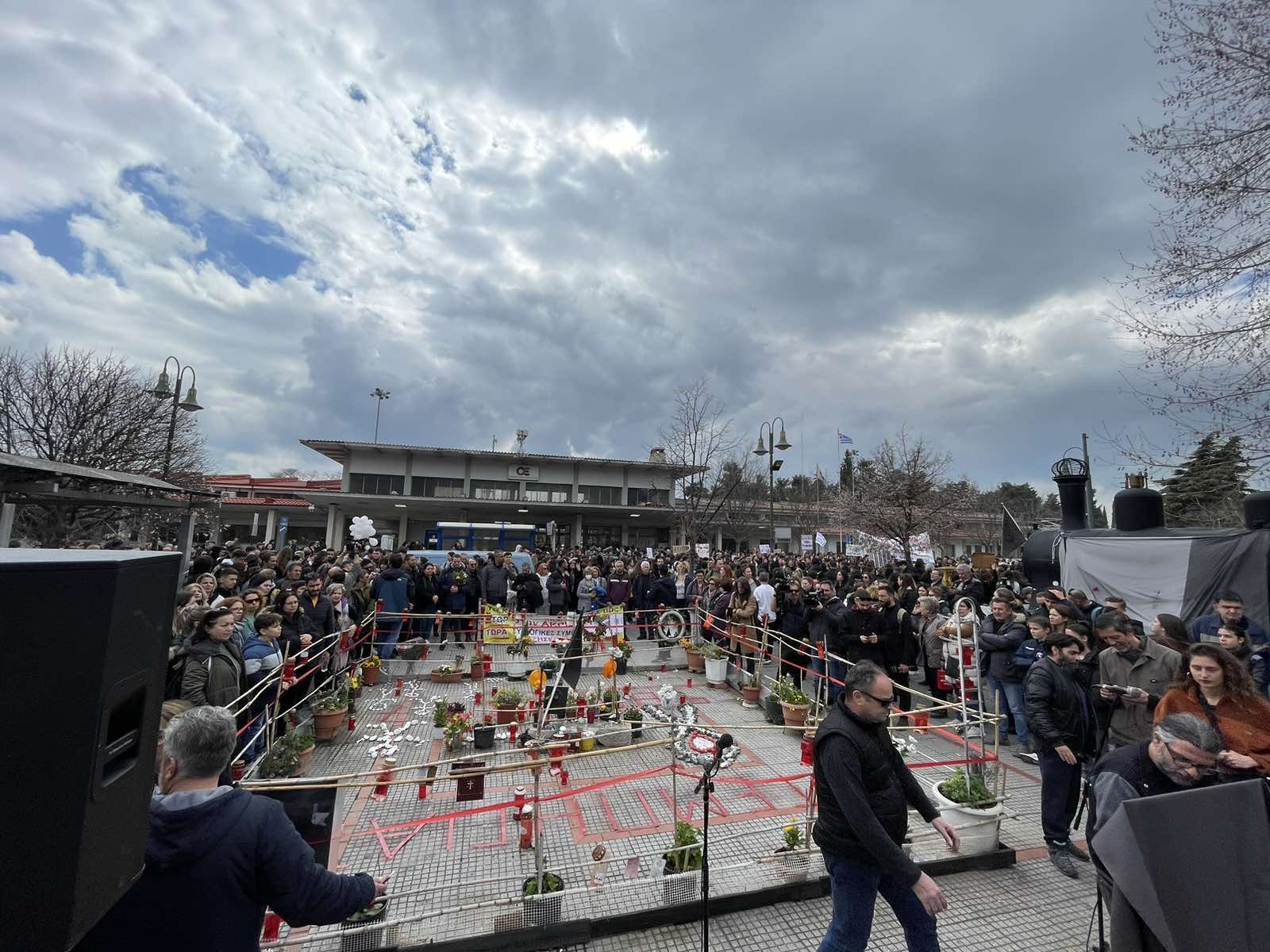 «Το έγκλημα στα Τέμπη δεν θα ξεχαστεί». Στην πλατεία του ΟΣΕ κατέληξε το μεσημέρι της Τετάρτης η μεγαλειώδης πορεία για τον έναν χρόνο από την σιδηροδρομική τραγωδία.