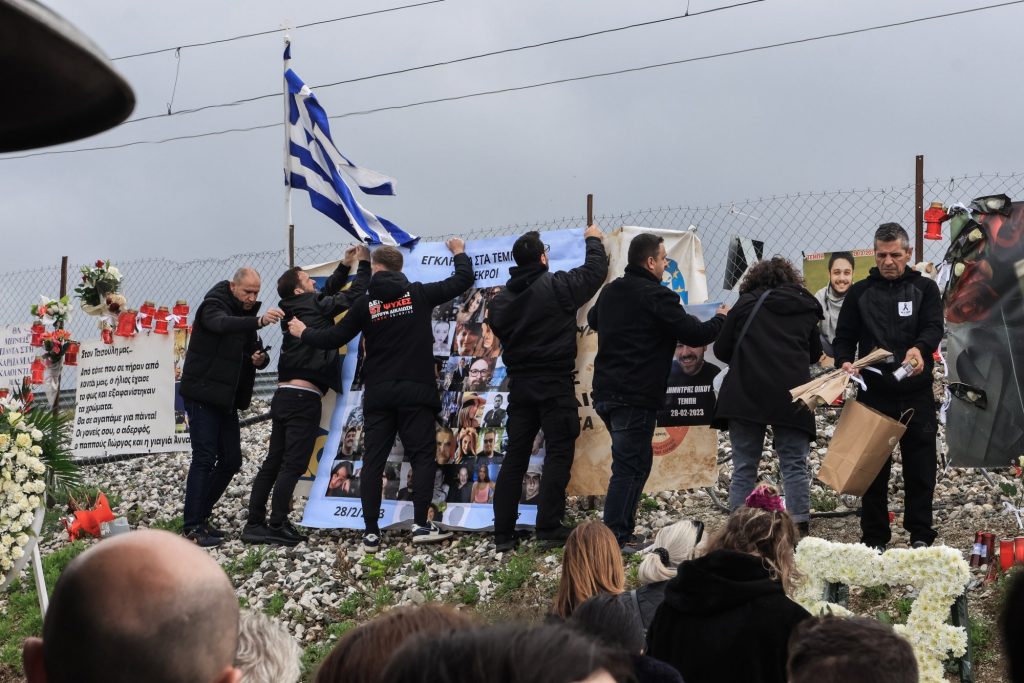Μνημόσυνο από τις οικογένειες των θυμάτων στον τόπο της τραγωδίας στα Τέμπη
