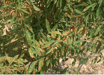 Συμπτώματα πολυστίγμωσης σε φύλλα αμυγδαλιάς
