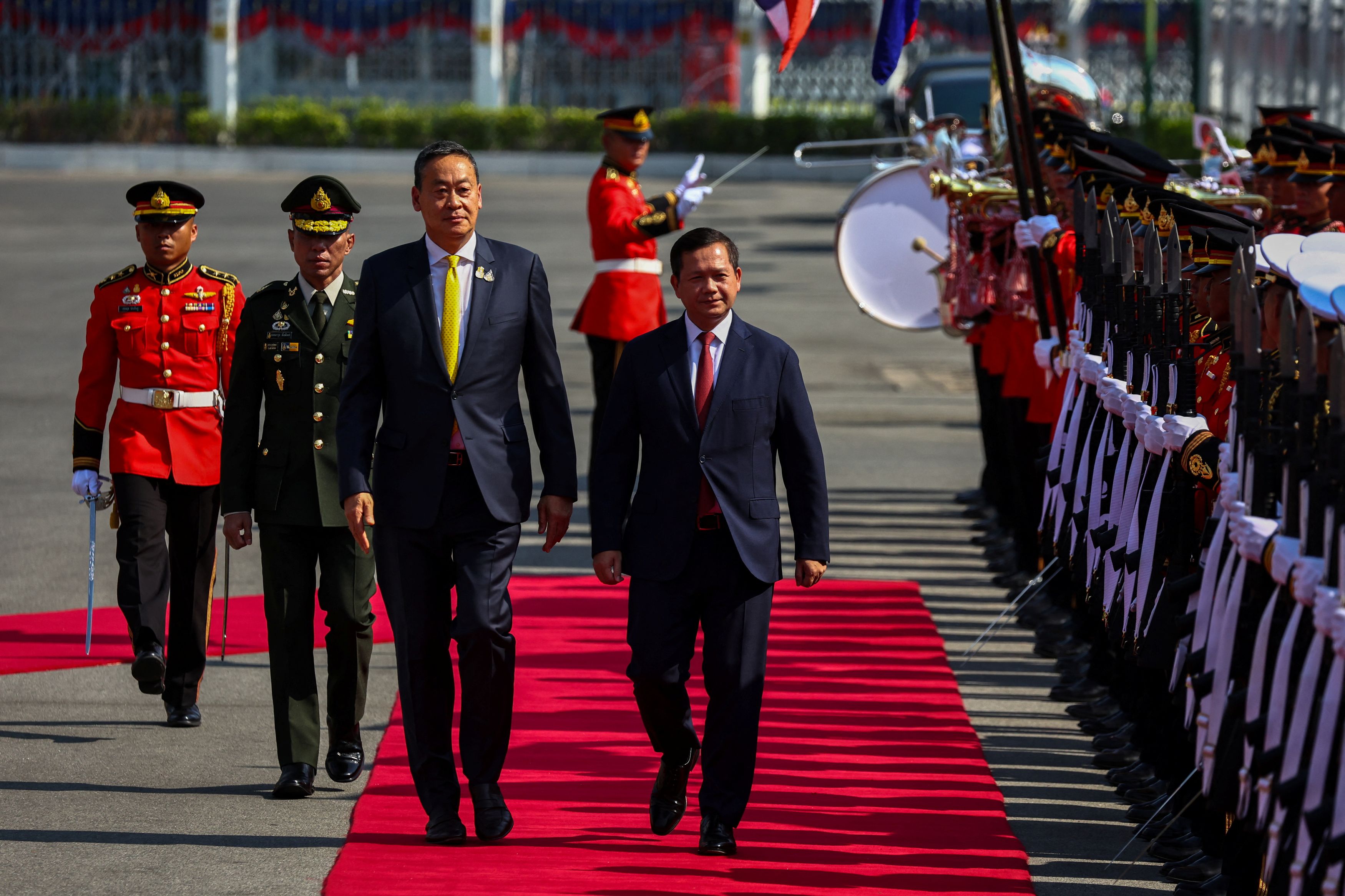 Ο πρωθυπουργός της Καμπότζης Hun Manet περπατά με τον πρωθυπουργό της Ταϊλάνδης Srettha Thavisin στο Κυβερνητικό Μέγαρο, κατά τη διάρκεια της επίσκεψης του Manet στην Ταϊλάνδη, στην Μπανγκόκ, Ταϊλάνδη, 7 Φεβρουαρίου 2024 (REUTERS/Athit Perawongmetha).