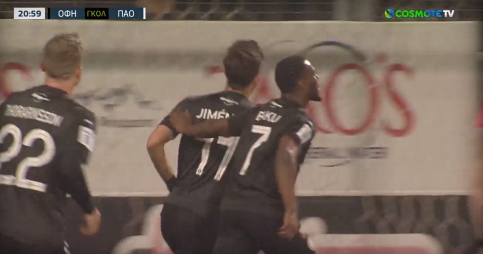 Στο 21′ συγκεκριμένα, ο Λάρσον έδωσε στον Ισέκα που βρήκε τον Χιμένεθ κι εκείνος αφού απέφυγε τον Ακαϊντίν εκτέλεσε για το 1-0 των Κρητικών.
