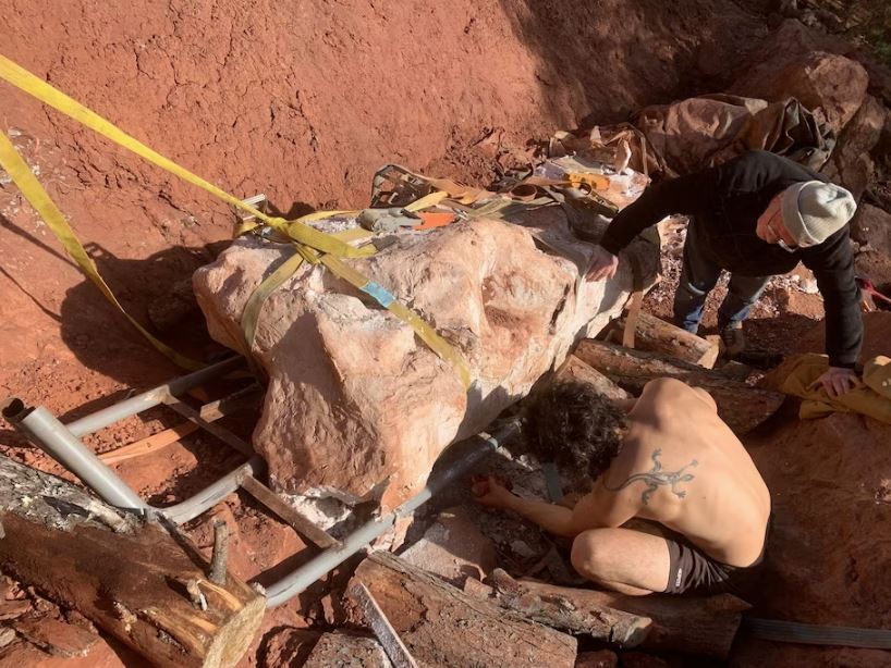 Το αντικείμενο που εξείχε αποδείχθηκε πως ήταν οστό από τη λεκάνη ενός τιτανόσαυρου μήκους 10 μέτρων.