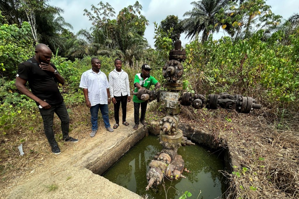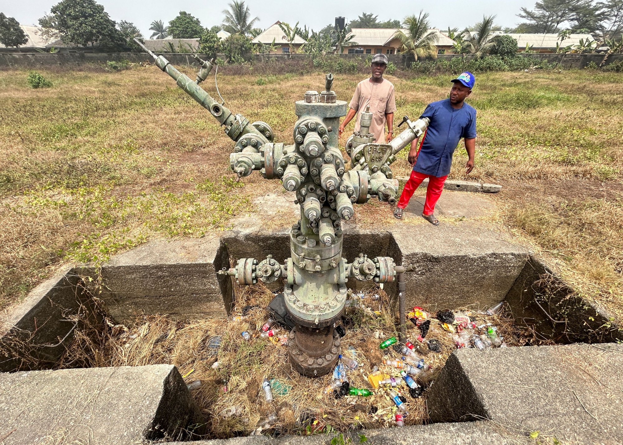 Κάτοικοι κοιτούν εγκαταλειμμένη γεώτρηση της Shell στην πολιτεία Μπαγέλσα (Reuters)