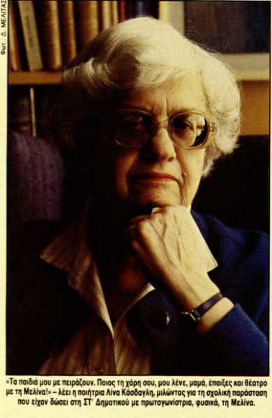Δεκαετία του ’30. Σχολείο γνωστό για την αυστηρότητά του. Αρσάκειο. Οι αρσακειάδες αποτελούν τύπους της Αθήνας, για τη συντηρητικότητα με την οποία έχουν γαλουχηθεί στο σχολείο αυτό. Βρισκόμαστε στη ΣΤ’ Δημοτικού, λοιπόν, του Αρσακείου και στεκόμαστε σε δύο κοριτσάκια. Τη μία τη λένε Λίνα Βλάχου. Την άλλη, ε, την άλλη τη λένε Μελίνα Μερκούρη κι είναι η εγγονή του δημάρχου, του Σπύρου Μερκούρη. Τα χρόνια θα περάσουν κι η Λίνα Βλάχου θα παντρευτεί τον Μανώλη Κάσδαγλη και θα γίνει Λίνα Κάσδαγλη, μητέρα ενός γιου και δύο κοριτσιών και ποιήτρια. Η άλλη έγινε η Μελίνα Μερκούρη που ξέρουμε. Τι περισσότερο; Με την ποιήτρια Λίνα Κάσδαγλη, λοιπόν, μια αναδρομή στο παρελθόν με σταθμό τη Μελίνα.