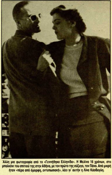 «Η Μελίνα πήγε στο Β’ Γυμνάσιο. Εγώ έχασα μία χρονιά, γιατί αρρώστησα, κι έτσι δεν ήμαστε πια συμμαθήτριες, παρ’ ότι κι εγώ πήγα σ’ αυτό το σχολείο. Και σ’ αυτό το σχολείο είχε παίξει θέατρο η Μελίνα. Είχε πια μεγαλώσει κι είχε έρθει κι ο παππούς της να τη δει. Και πάλι μου έκανε εντύπωση η ομορφιά και των δυο τους».