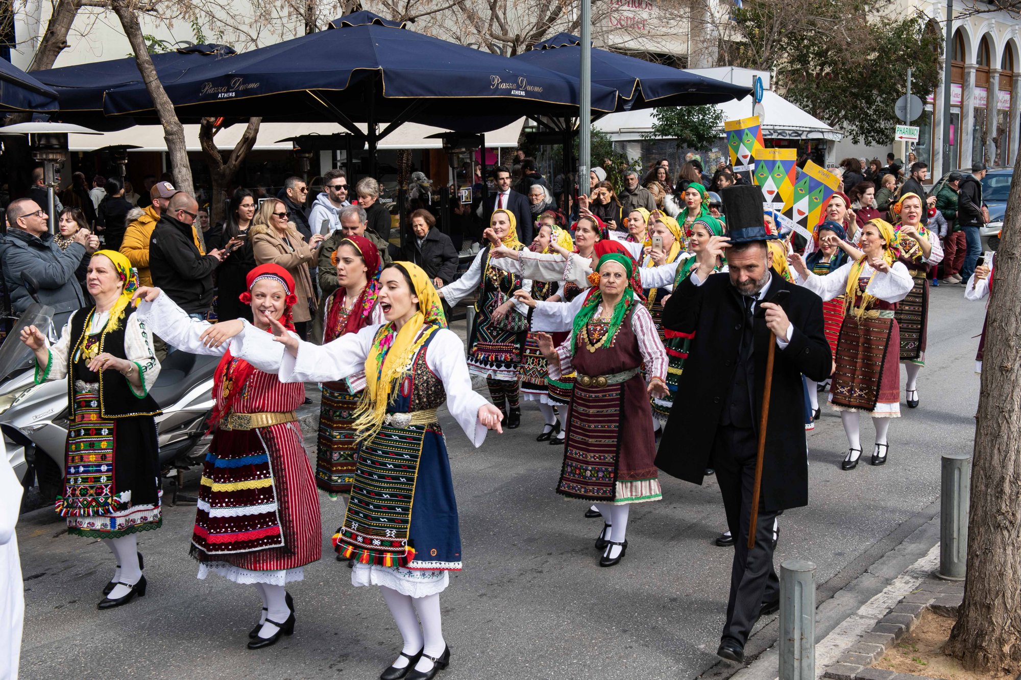Αποκριάτικη διαδρομή από την Πολιτιστική Εταιρεία Ορχηστρικής Τέχνης ΒΑΚΧΑΙ με αναπαράσταση του εθίμου των Κορδελάτων της Νάξου στην πλατεία Κοτζιά.