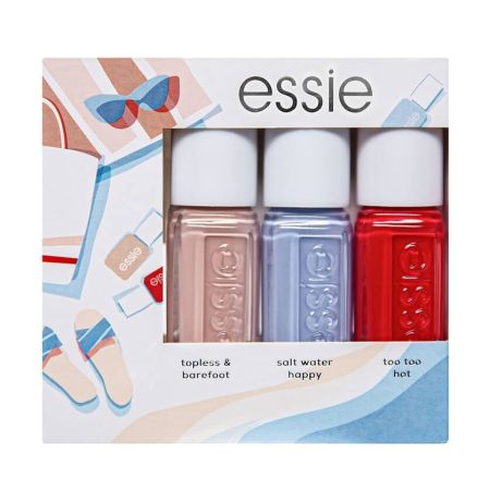 Tο mini summer kit Νυχιών Essie είναι το ιδανικό mini set για το καλοκαιρινό μανικιούρ σας. Τρεις μοναδικές best selling αποχρώσεις Εssie, σε ένα καλοκαιρινό kit – απαλό μπεζ-ροζ Τopless και Βarefoot, ανοιχτό μπλε Salt Water Happy, καυτό κόκκινο-κοραλί Too Too hot.
