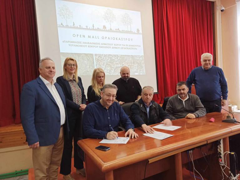 Ειδικότερα, υπογράφηκε η σύμβαση για την κατασκευή του έργου «Παρεμβάσεις αναβάθμισης δημόσιου χώρου για τη δημιουργία του Ανοικτού Κέντρου Εμπορίου» Ωραιοκάστρου.