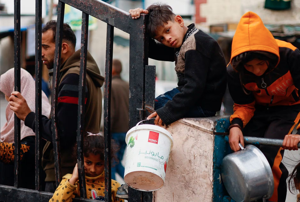 Ανθρωπιστική βοήθεια προοριζόμενη για τους Παλαιστίνιους στη Λωρίδα της Γάζας θα μεταφερθεί διά θαλάσσης από την Κύπρο στον θύλακο εντός ημερών, δήλωσε χθες Τετάρτη πηγή του πρακτορείου ειδήσεων Reuters ενήμερη με το θέμα (στη φωτογραφία του Reuters/Ibraheem Abu Mustafa, επάνω, παιδιά περιμένουν να πάρουν φαγητό από ανθρωπιστική κουζίνα στη Ράφα).