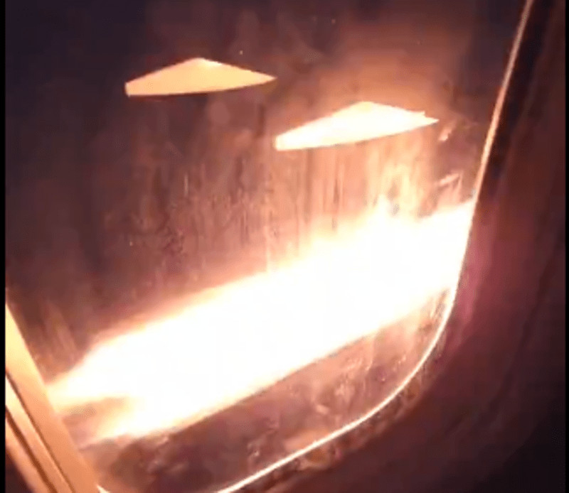Συγκεκριμένα, σύμφωνα με την New York Post, το βίντεο που γυρίστηκε εκείνη την ώρα δείχνει πορτοκαλί σπίθες να εκτοξεύονται κάτω από την αριστερή πτέρυγα του αεροπλάνου, μερικά από τα παράθυρα των επιβατών. Οι έντονες φλόγες ήταν τόσο καυτές που φαίνονταν σχεδόν λευκές στον νυχτερινό ουρανό.