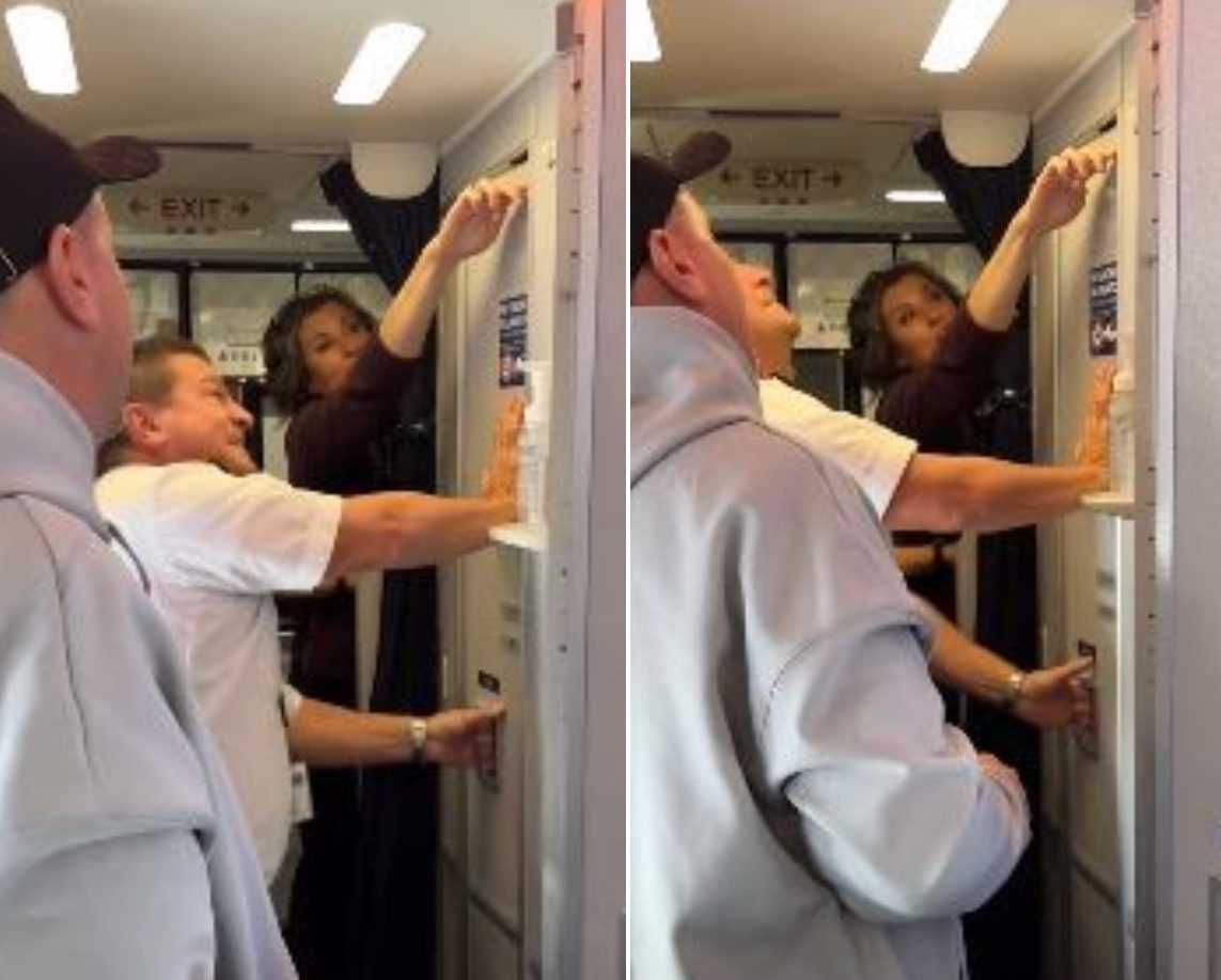 Η σύζυγος του 34χρονου δημοσίευσε βίντεο και αφηγήθηκε τον Γολγοθά του σε μια ανάρτηση στο Reddit. Η γυναίκα αντιλήφθηκε ότι κάτι συμβαίνει με τον σύζυγό της όταν άκουσε κάποιον να αναφέρει τη λέξη «κολλημένη». Γύρισε και είδε δύο μέλη του πληρώματος να τραβούν την πόρτα της τουαλέτας.