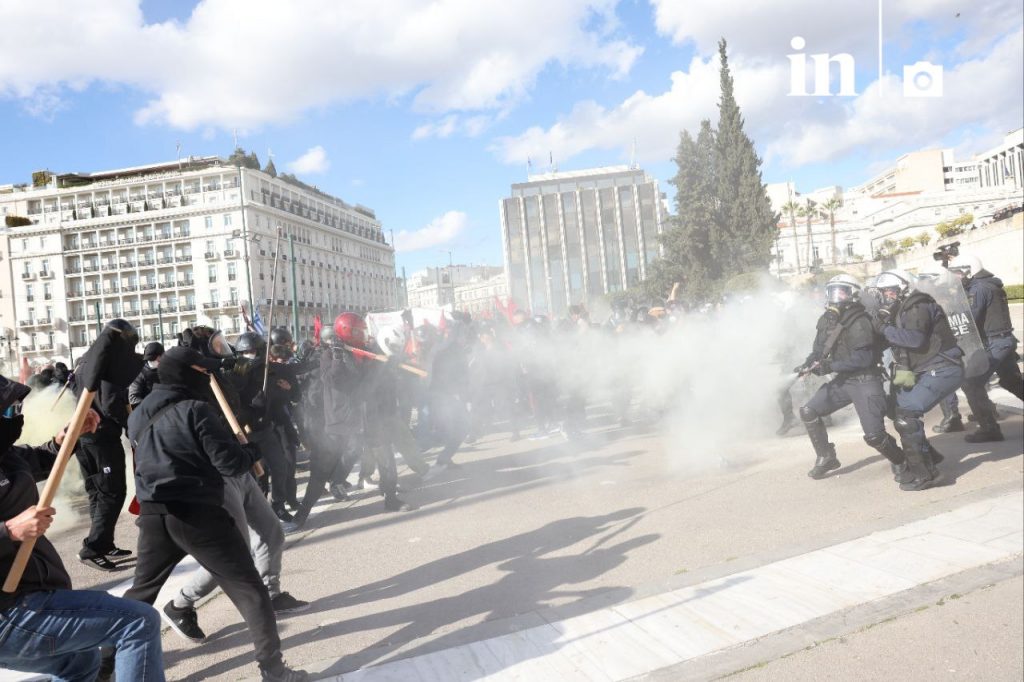 Τα επεισόδια ξεκίνησαν όταν ένα μπλοκ διαδηλωτών, επιχείρησε να πατήσει στην πλατεία, μπροστά από το μνημείο του Άγνωστου Στρατιώτη. Σύμφωνα με τη ΓΑΔΑ, μέχρι το τέλος της ημέρας είχαν γίνει 14 προσαγωγές και 3 συλλήψεις.
