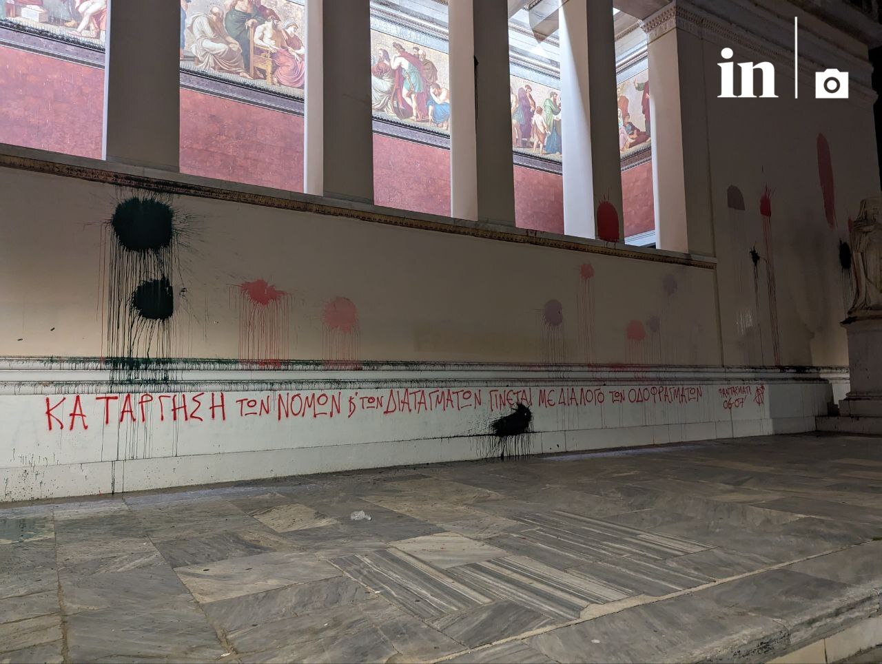 21:00 Πέταξαν μπογιές στο κτίριο της Πρυτανείας