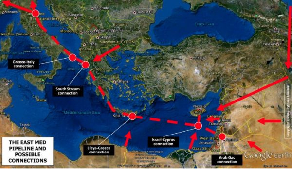 Το πιο σημαντικό από αυτά ήταν το έργο του αγωγού φυσικού αερίου που ονομάζεται East-Med (Ανατολική Μεσόγειος), ο οποίος θα ξεκινούσε από τις ακτές του Ισραήλ και θα εκτεινόταν υποθαλάσσια μέχρι την Κύπρο και την Ελλάδα.