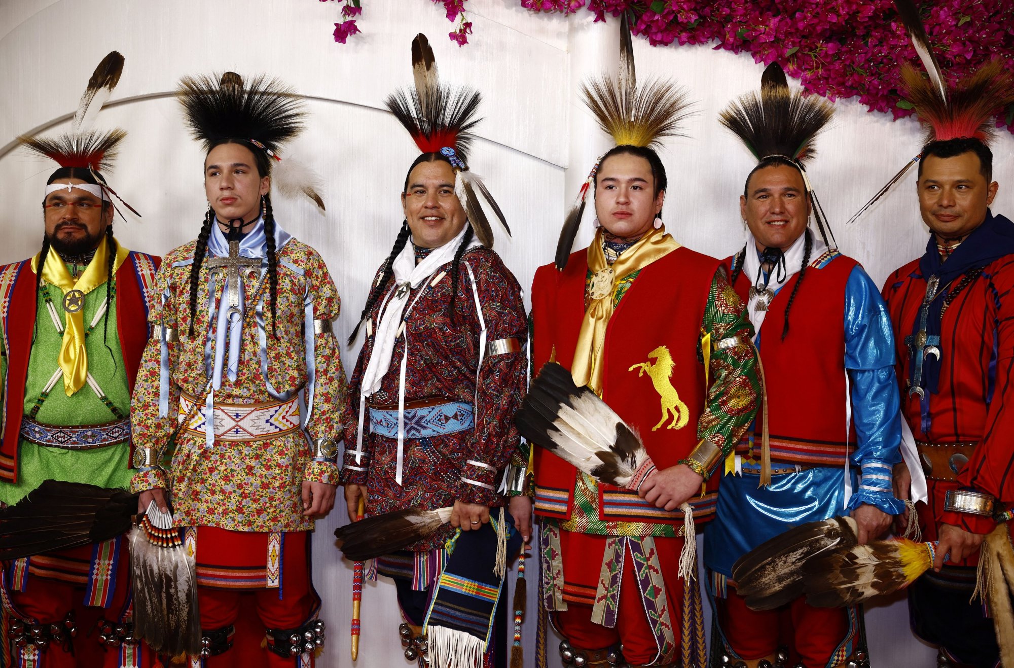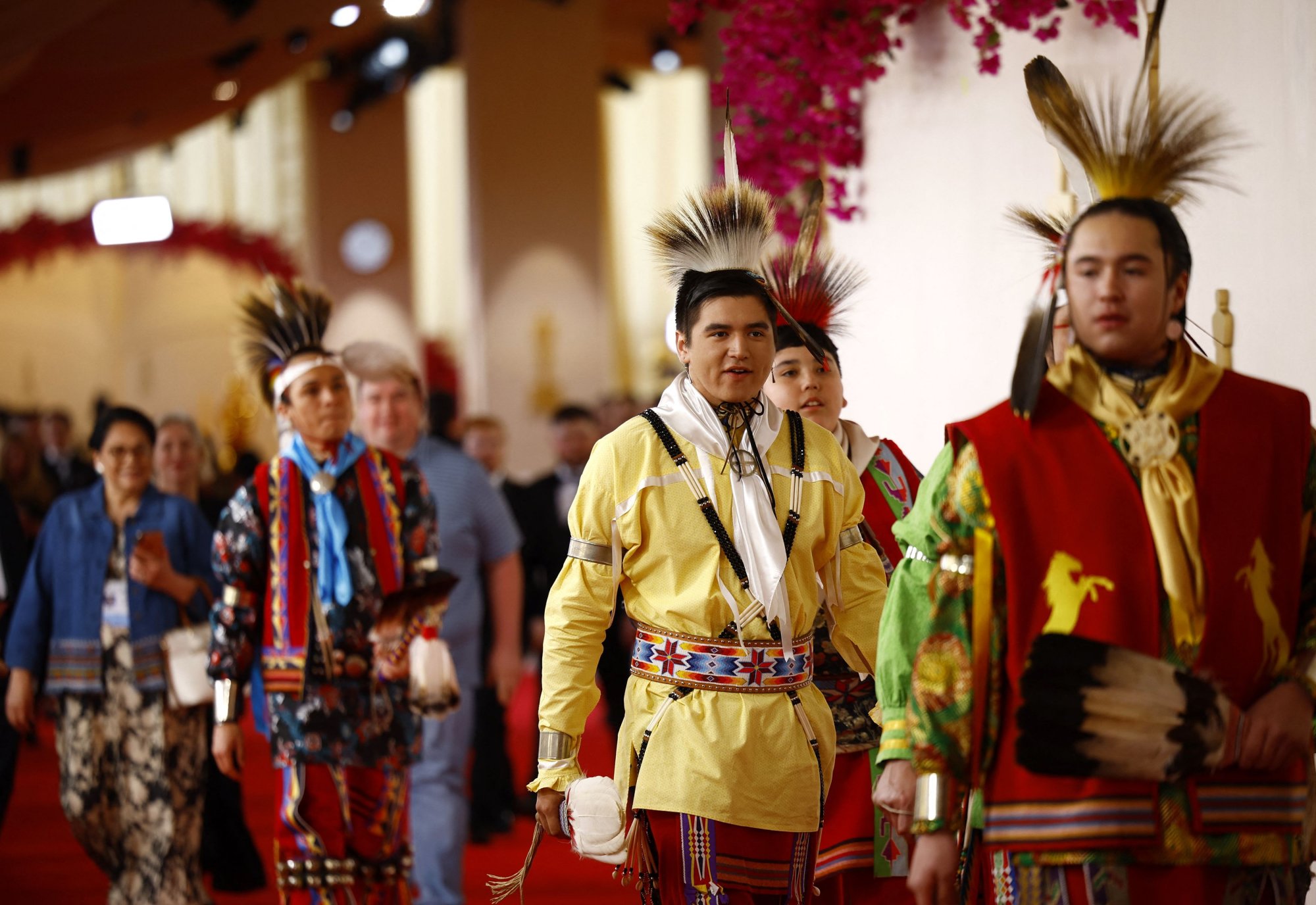 Τραγουδιστές και ηθοποιοί της ινδιάνικης φυλής Osage δίνουν το «παρών» στην 96η τελετή απονομής των Όσκαρ.