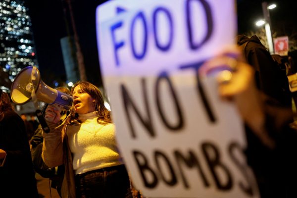 Διαδηλώτρια στο Τελ Αβίβ ζητά να «σταματήσει η γενοκτονία» και «κατάπαυση του πυρός, με όλα τα μάτια στραμμένα στη Ράφα».