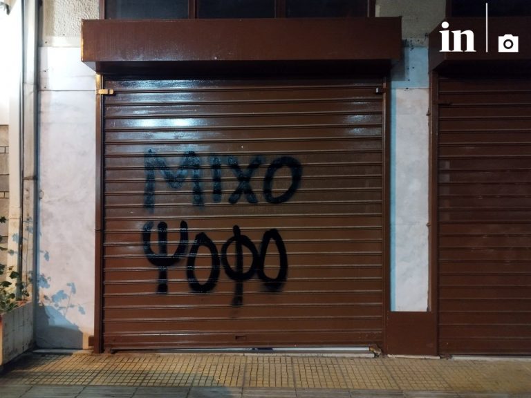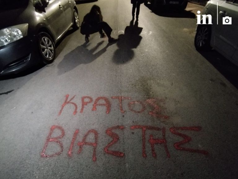 Έγραψαν συνθήματα στα κατεβασμένα ρολά του μαγαζιού του Μίχου, ενώ αντικείμενα πέταξαν προκαλώντας φθορές και στο διπλανό κατάστημα, επιρρίπτοντας ευθύνες για το γεγονός ότι το «έγκλημα» άργησε να αποκαλυφθεί. Χρήση δακρυγόνων έκαναν οι δυνάμεις της Αστυνομίας.