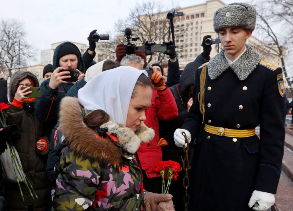 Ένα γαρύφαλλο από τη Μαρία Αντρέγιεβα στον Τάφο του Άγνωστου Στρατιώτη, στη Μόσχα (Reuters)