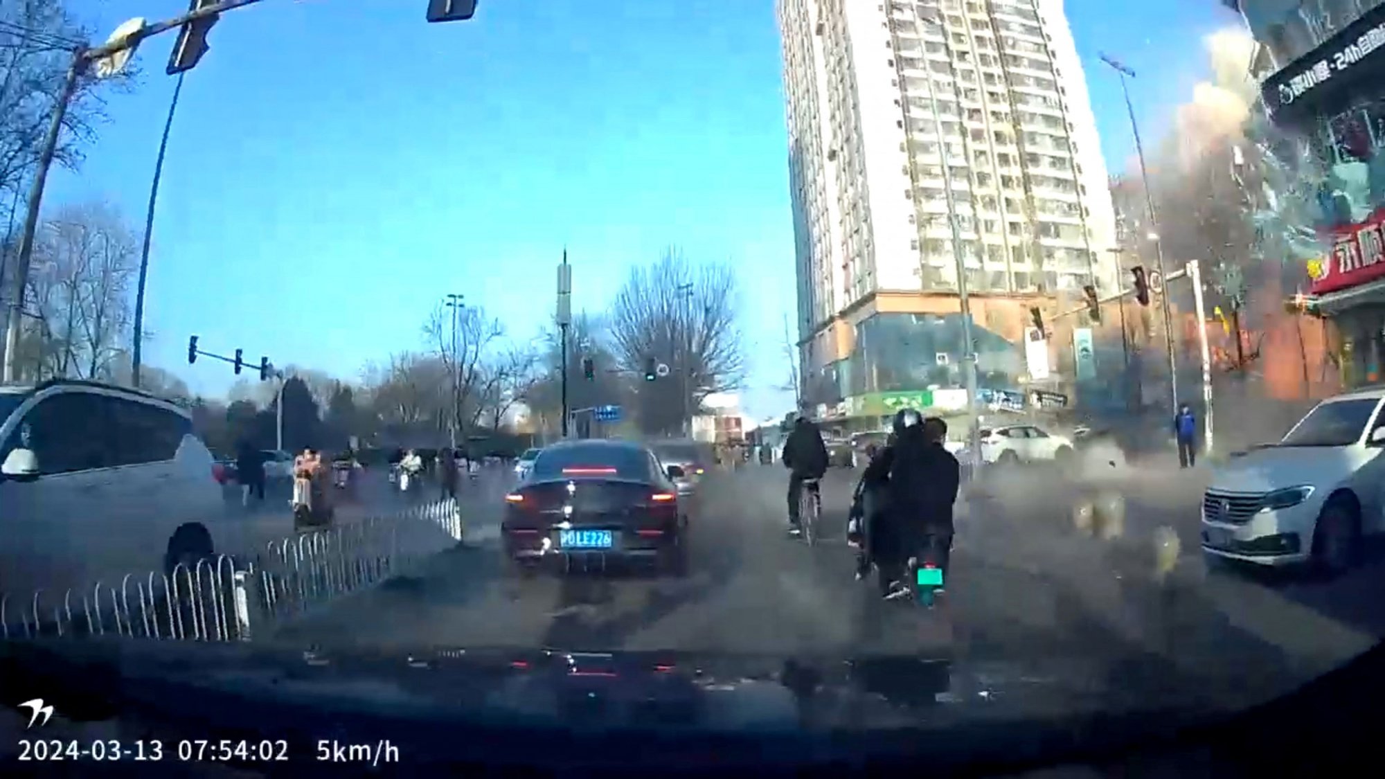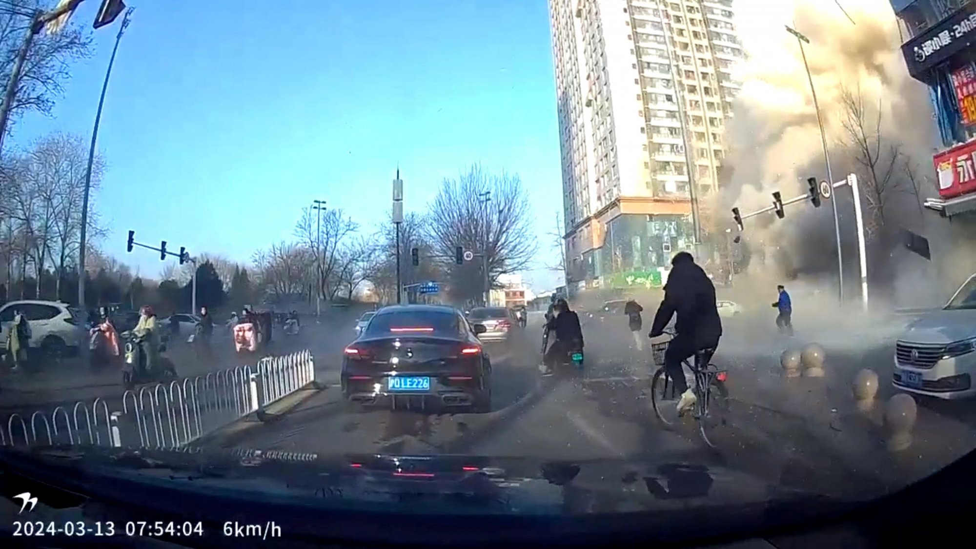 Εικόνα από κάμερα αυτοκινήτου λίγα δευτερόλεπτα μετά την ισχυρή έκρηξη