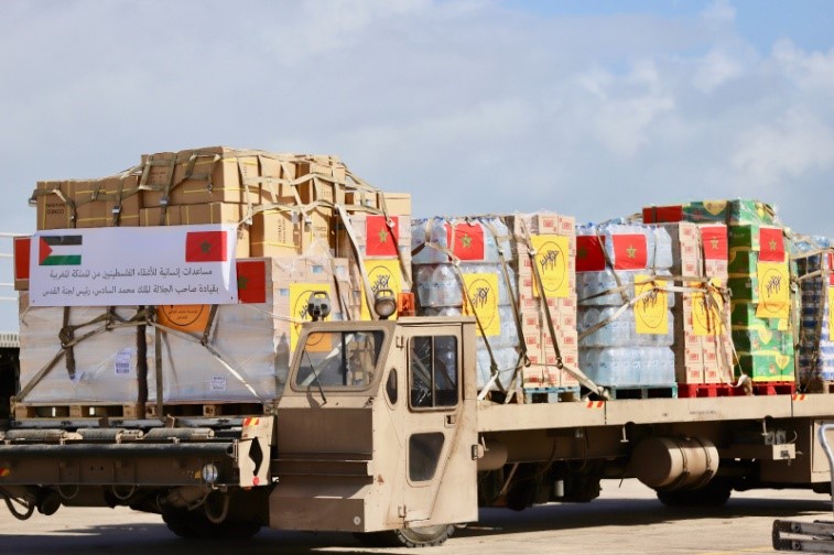 Το Μαρόκο, με εντολή του βασιλιά Μοχάμεντ ΣΤ’, ο οποίος είναι και πρόεδρος της Επιτροπής για την Ιερουσαλήμ (Al Quds), έστειλε στον παλαιστινιακό πληθυσμό της Γάζας και στην Ιερουσαλήμ ανθρωπιστική βοήθεια, που περιλαμβάνει άνω των 40 τόνων τροφίμων και ειδών πρώτης ανάγκης και η παράδοση της οποίας δρομολογήθηκε από ξηράς, χάρη σε μια συμφωνία μεταξύ Ραμπάτ και Τελ Αβίβ.
