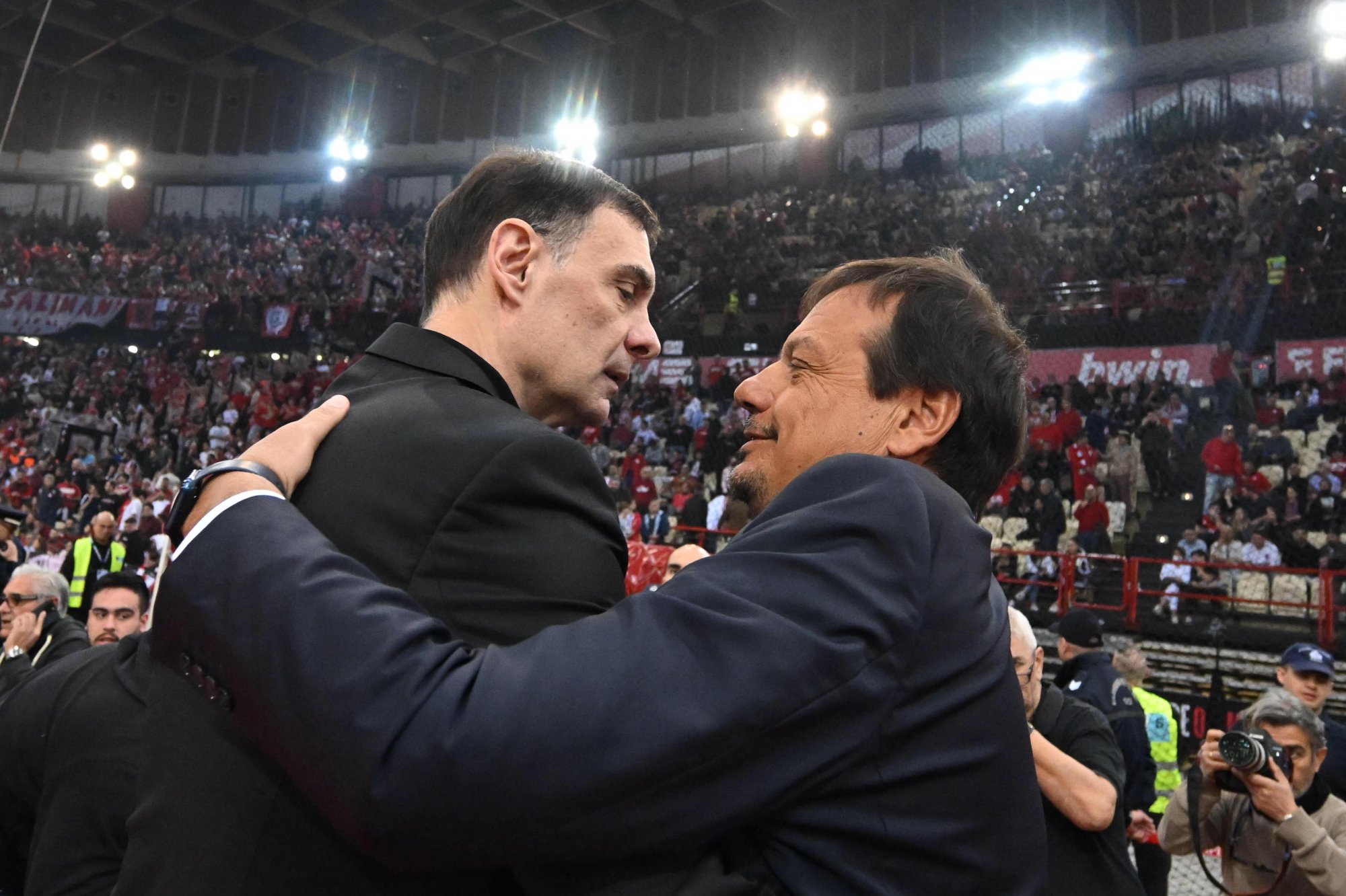 Οι δύο από τους κορυφαίους προπονητές της Euroleague τα είπαν σε εξαιρετικό κλίμα και μάλιστα είχαν μια θερμή αγκαλιά όταν χαιρετήθηκαν.