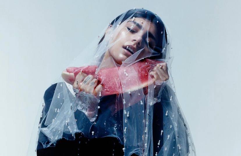 Χθες το βράδυ (15 Μαρτίου), η φωτογράφος Harley Weir ανακοίνωσε το νέο πρότζεκτ Freedom 4 Palestine με μια εικόνα της Μία Καλίφα να κρατάει μια φέτα καρπούζι, με ένα λεπτό πέπλο από χάντρες να καλύπτει το πρόσωπό της.