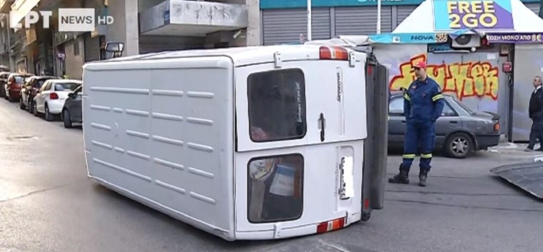 Τροχαίο στην Πατησίων – Φορτηγάκι συγκρούστηκε με Ι.Χ και αναποδογύρισε