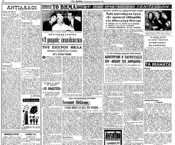 «ΤΟ ΒΗΜΑ», 4.1.1963, Ιστορικό Αρχείο «ΤΟ ΒΗΜΑ» & «ΤΑ ΝΕΑ»