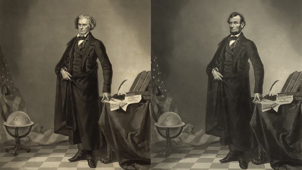 «Στην αρχή της καριέρας του, ο πολιτικός του Νότου Τζον Καλχούν ήταν ένθερμος υποστηρικτής της δουλείας. Είναι ειρωνικό, επομένως, ότι το σχεδόν εμβληματικό πορτρέτο του Αβραάμ Λίνκολν είναι μια σύνθεση του σώματος του Καλχούν και του κεφαλιού του Λίνκολν. Λέγεται ότι αυτό έγινε επειδή δεν υπήρχε διαθέσιμο πορτρέτο του Λίνκολν σε επαρκώς «ηρωικό ύφος»» εξήγησε ο Δρ Φαρίντ.