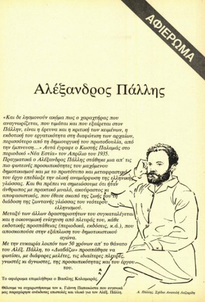 *Αποσπάσματα από κείμενο του Εμμανουήλ Κριαρά (τμήμα εκτενέστερης μελέτης του για τον Αλέξανδρο Πάλλη), που είχε δημοσιευτεί στο περιοδικό «Διαβάζω» (τεύχος 118, 8 Μαΐου 1985).