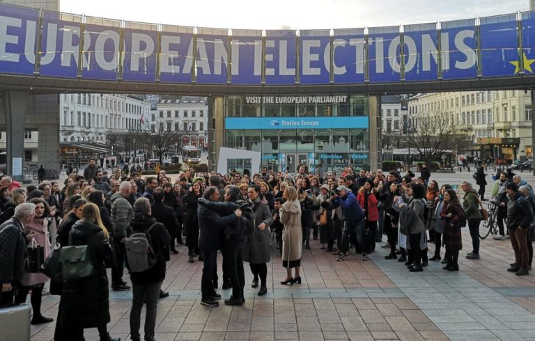 Στιγμιότυπο από τη συγκέντρωση έξω από το Ευρωκοινοβούλιο