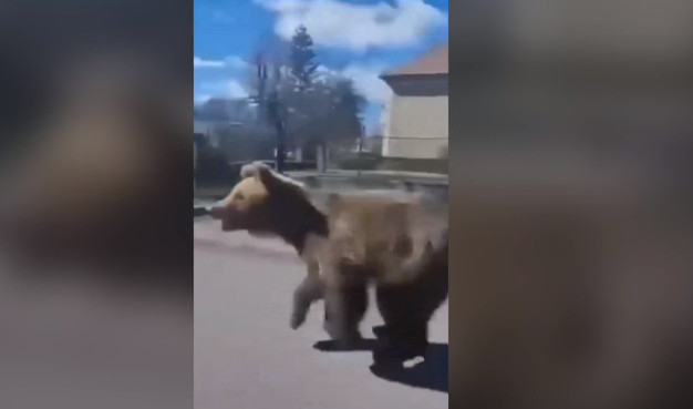 Βίντεο που αναρτήθηκαν στα μέσα κοινωνικής δικτύωσης έδειχναν την αρκούδα να τρέχει κατά μήκος ενός δρόμου και σε ένα από αυτά να ορμάει σε έναν άνδρα στο πεζοδρόμιο.