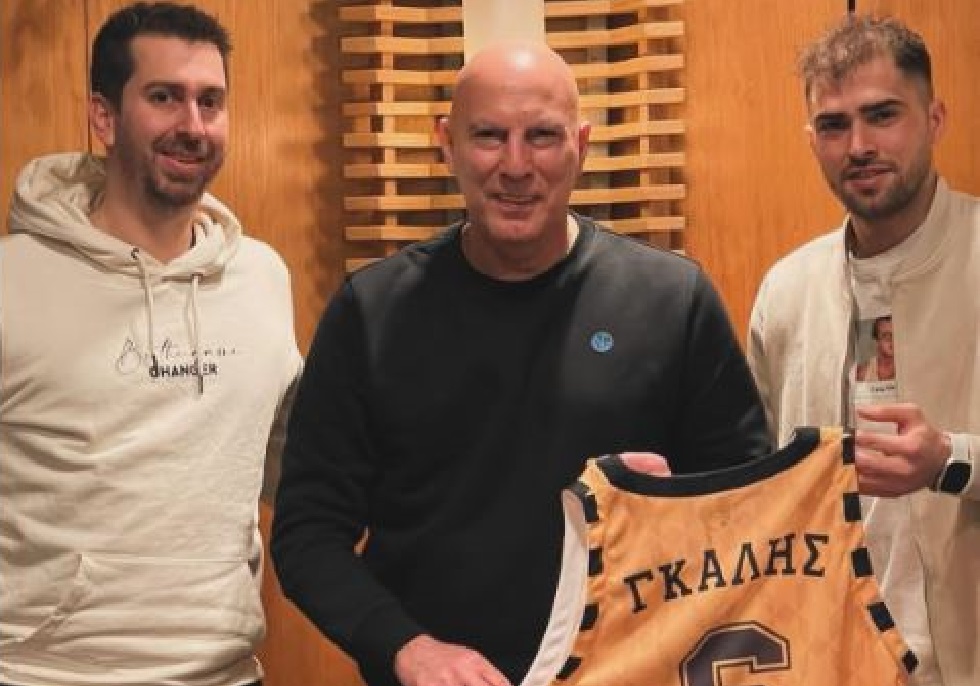 Η εκ του σύνεγγυς επαφή των δύο ανδρών έγινε στη Θεσσαλονίκη με τον Νίκο Γκάλη να εκφράζει, μεταξύ άλλων, ευχές στον Βασίλη Τολιόπουλο για επιτυχίες με τον Αρη και την εθνική ομάδα, αλλά και σε προσωπικό επίπεδο. Υπέγραψε, επιπλέον, για τον 28χρονο διεθνή γκαρντ συλλεκτική φανέλα του.