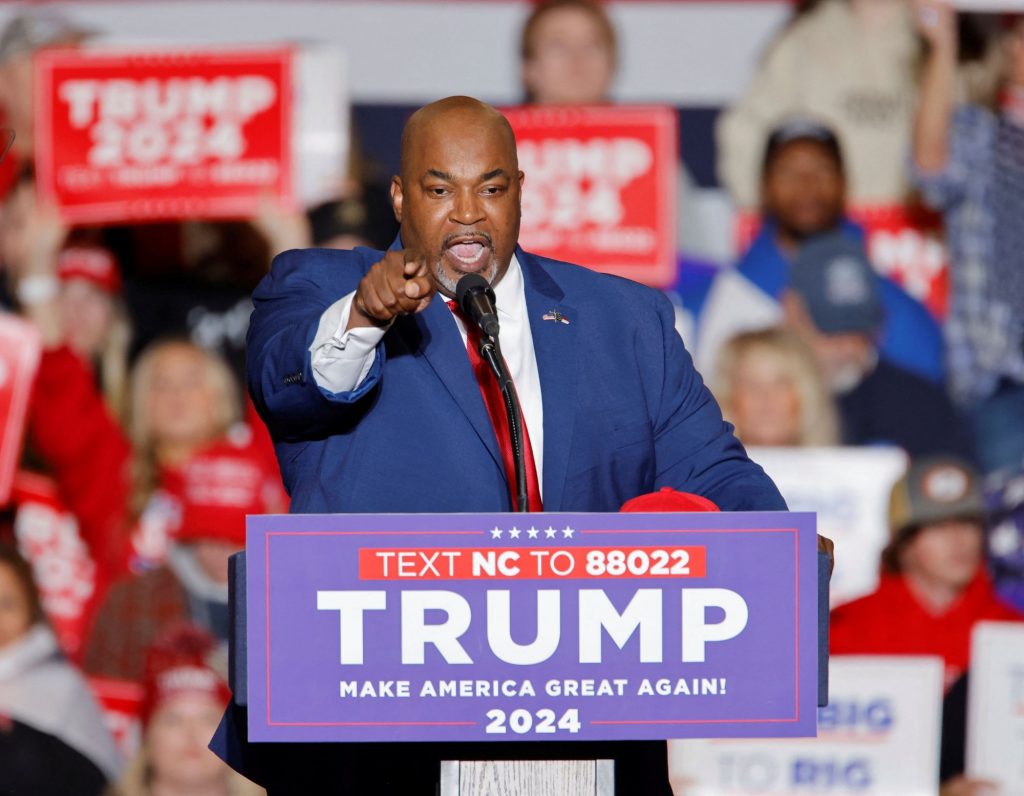 Ο Μαρκ Ρόμπινσον σε προ ημερών προεκλογική συγκέντρωση υπέρ του Τραμπ, στο Γκρίνσμπορο, στη Βόρεια Καρολίνα (REUTERS/Jonathan Drake)