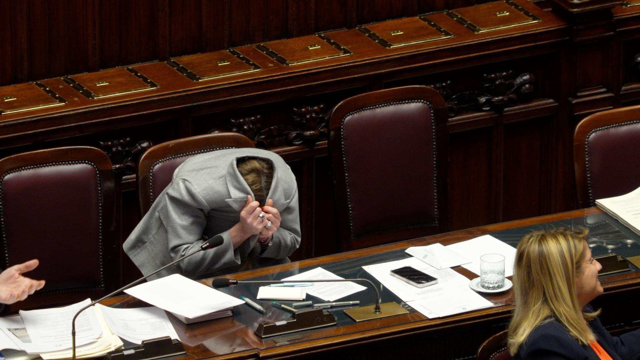 «Viral» έχει γίνει τις τελευταίες ώρες φωτογραφία της Ιταλίδας πρωθυπουργού Τζόρτζια Μελόνι, η οποία κρύβει το πρόσωπό της μέσα στο σακάκι της, ενώ βρίσκεται σε εξέλιξη συζήτηση στο κοινοβούλιο της Ρώμης.