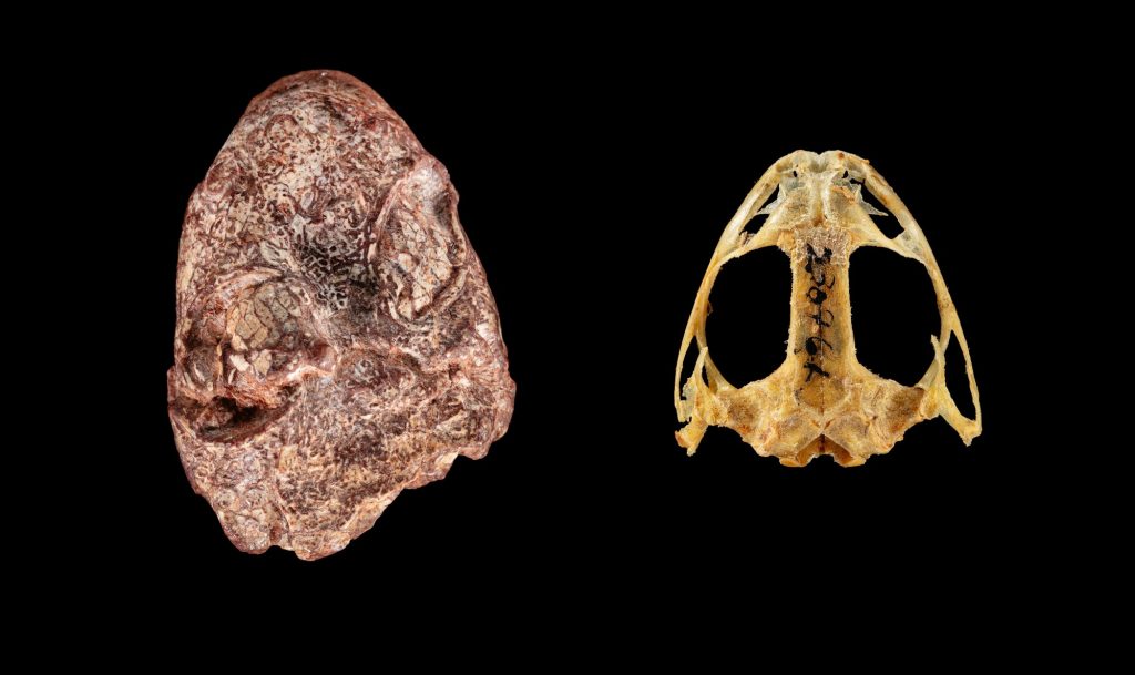 Το κρανίο του Kermitops (Α) συγκριτικά με το κρανίο ενός σύγχρονου βάτραχου (Brittany M. Hance, Smithsonian)