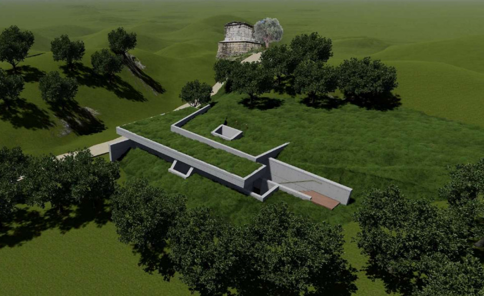 Η μελέτη για τις υποδομές της Νότιας Εισόδου αφορά στην κατασκευή κτηρίου επιφάνειας 98 τ.μ. Το κτήριο είναι υπόσκαφο με κεντρικό ημιυπαίθριο διάδρομο που εξυπηρετεί αμφίπλευρα του χώρους του φυλακίου, των WC κοινού και εργαζομένων και τον βοηθητικό χώρο γενικής χρήσης. Ο ημιυπαίθριος διάδρομος καταλήγει σε υπαίθρια κλίμακα προς τον αρχαιολογικό χώρο.