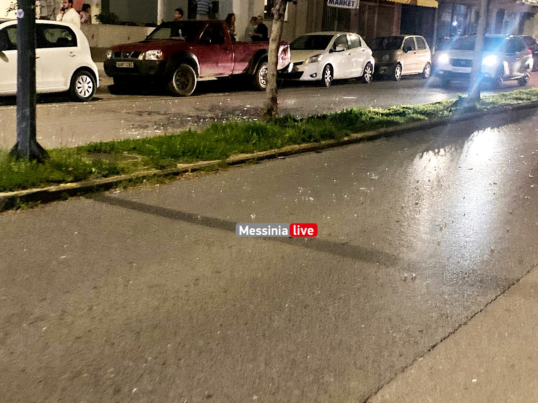 Γέμισε με γυαλιά και σπασμένα τζάμια η συμβολή των οδών Ακρίτα και Πλάτωνος (Πηγή: Messinia Live)