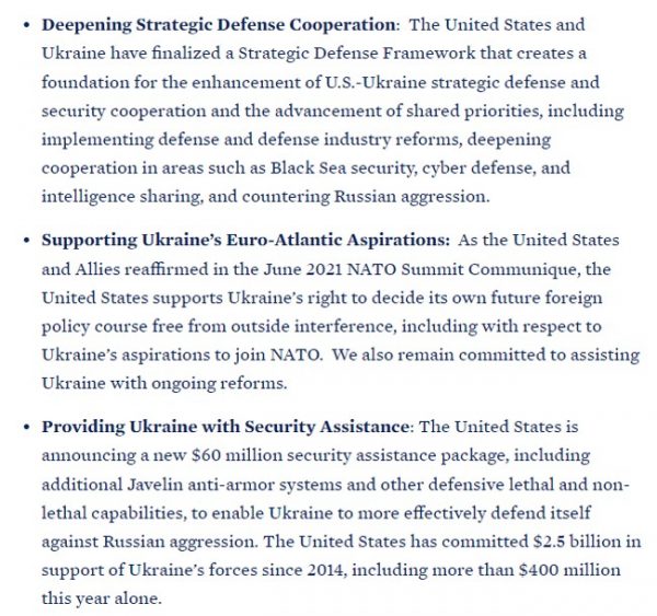 Από την Κοινή Δήλωση Αμερικανοουκρανικής Στρατηγικής Συνεργασίας του 2021, όπου αναφέρονται οι «ευρωατλαντικές βλέψεις» της Ουκρανίας .