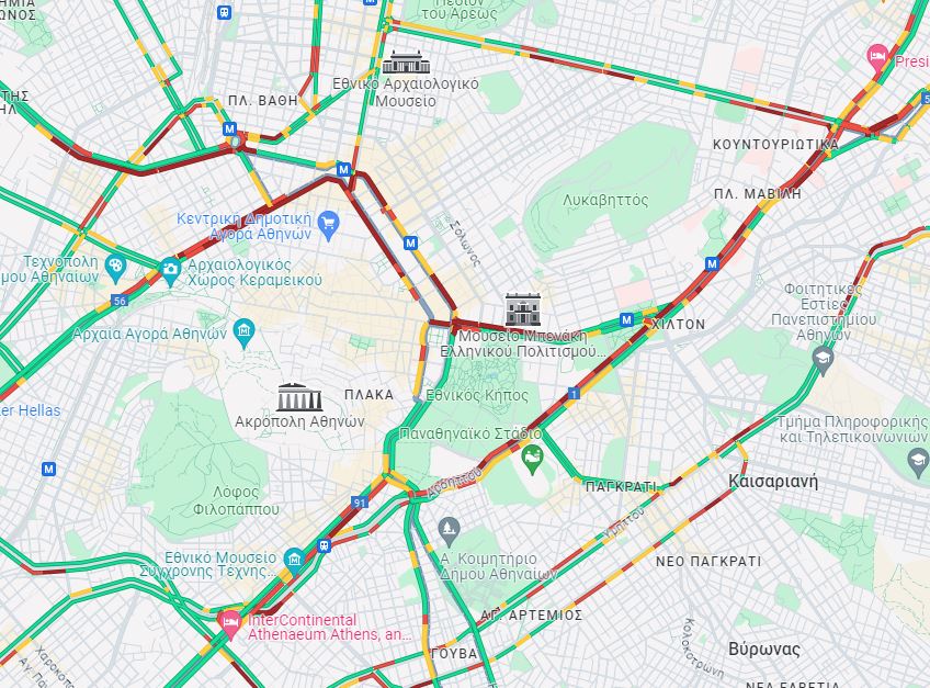 Λόγω των κυκλοφοριακών ρυθμίσεων έχουν προκληθεί έντονα κυκλοφοριακά προβλήματα στους γύρω δρόμους όπως φαίνεται και στον χάρτη.