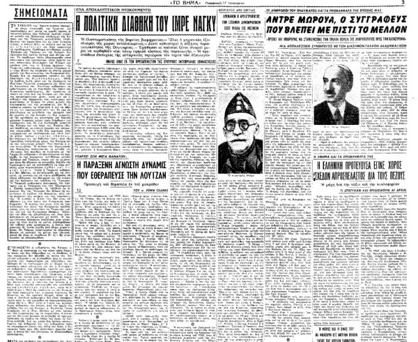 «ΤΟ ΒΗΜΑ», 17.1.1958, Ιστορικό Αρχείο «ΤΟ ΒΗΜΑ» & «ΤΑ ΝΕΑ»