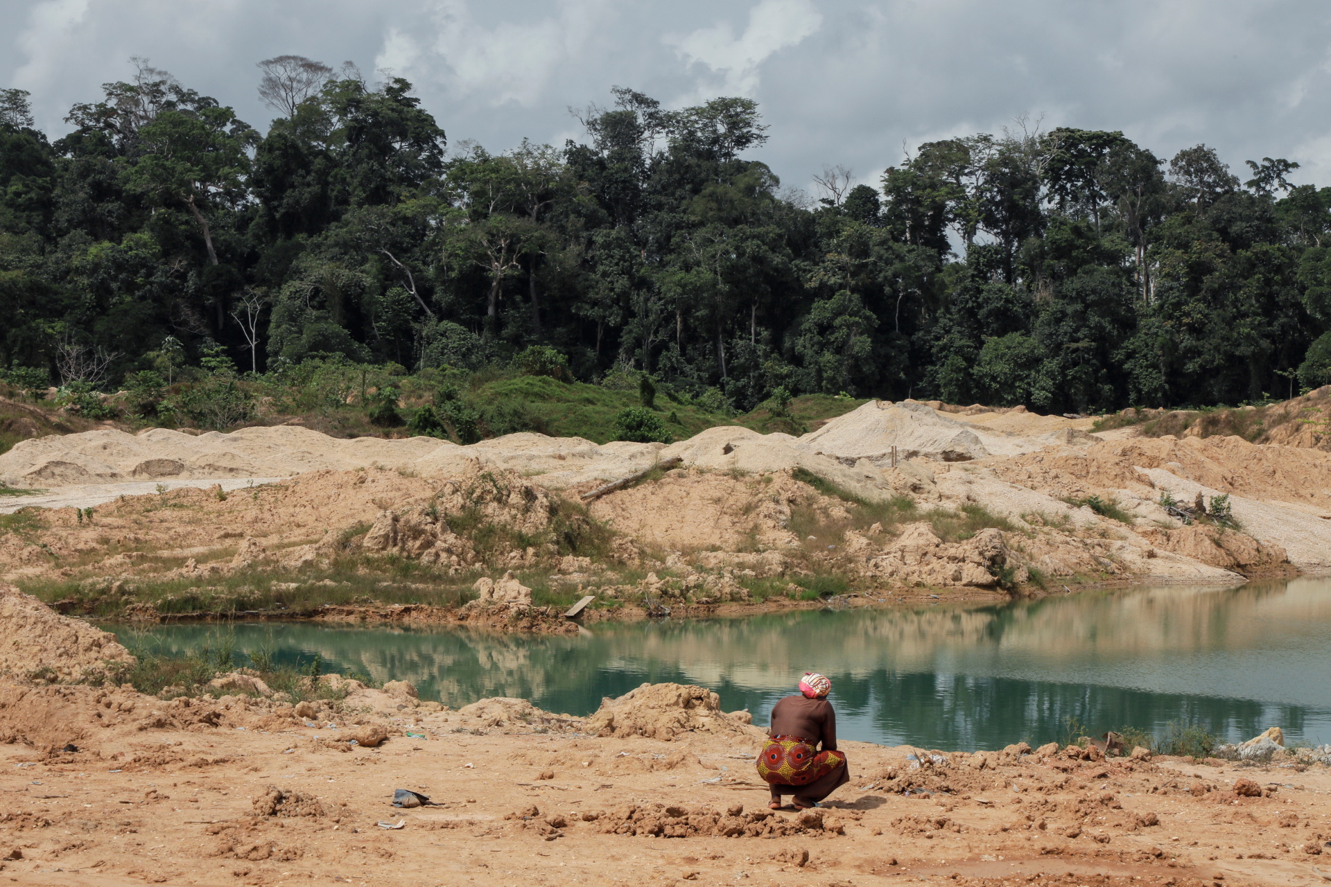 Η περιήγηση στο απογυμνωμένο τοπίο της φάρμας της – διάσπαρτο με λίμνες λυμάτων μολυσμένων με κυάνιο, στο χρώμα του τσαγιού, που αφήνουν οι παράνομοι χρυσωρύχοι – είναι αρκετή για να κάνει την Τζιάμφι να λυγίσει.