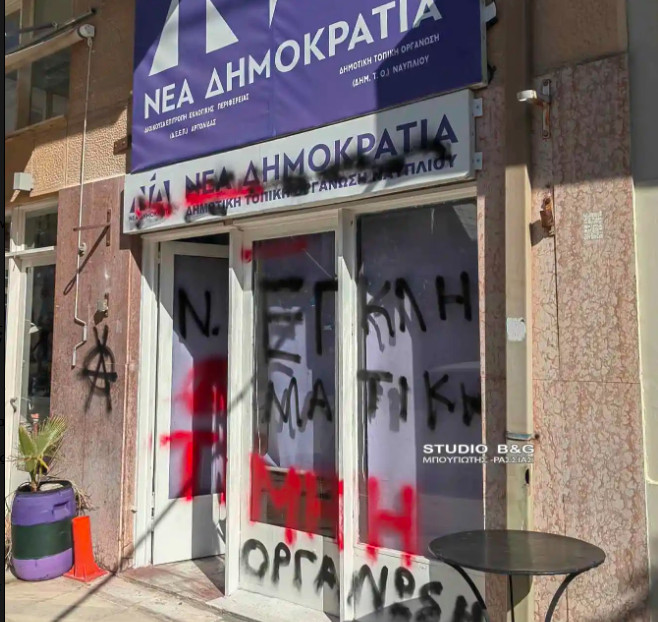 Επίθεση δέχτηκαν τα γραφεία της Νέας Δημοκρατίας αλλά και τα Δικαστήρια στο Ναύπλιο, όπου άγνωστοι έγραψαν συνθήματα, λίγο πριν απαγγελθεί η απόφαση περί ενοχής του Ηλία Μίχου για την υπόθεση της σεξουαλικής κακοποίησης της 12χρονης από τα Σεπόλια.