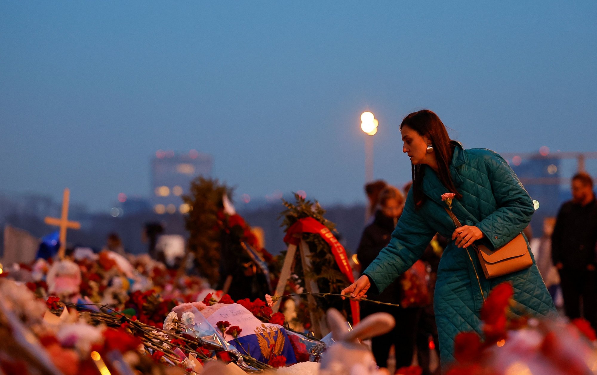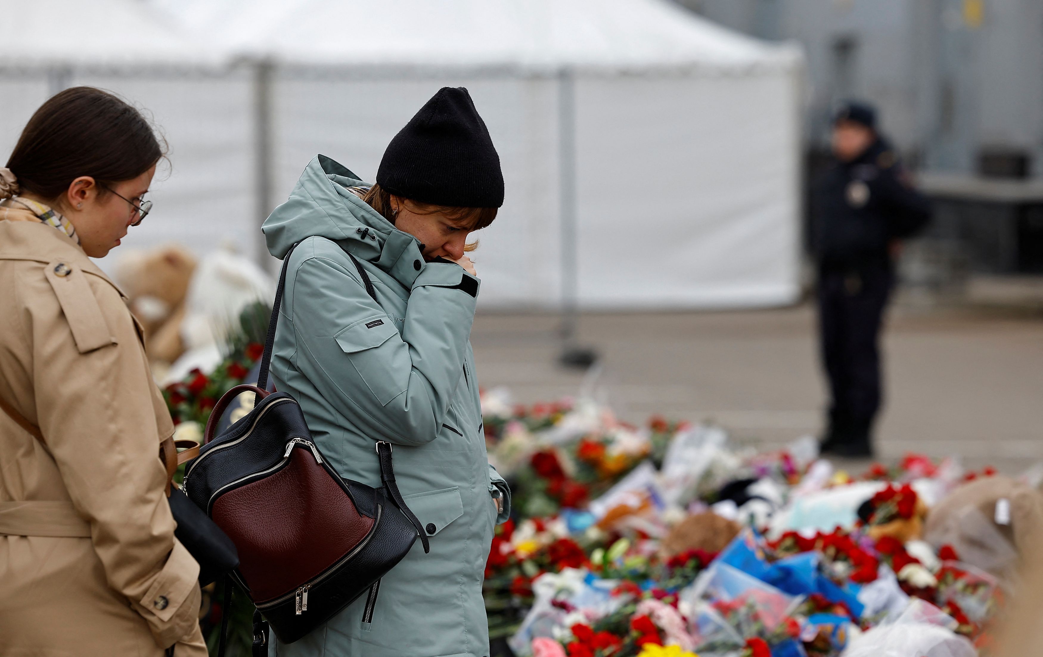 Ρώσοι πολίτες στον χώρο που σημειώθηκε η τρομοκρατική επίθεση στη Μόσχα.