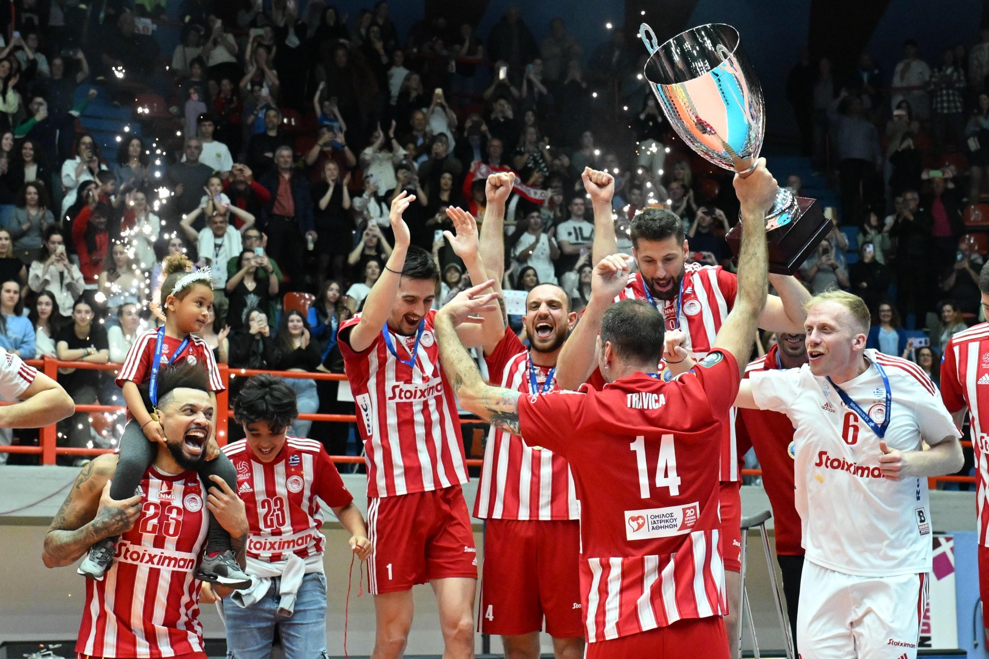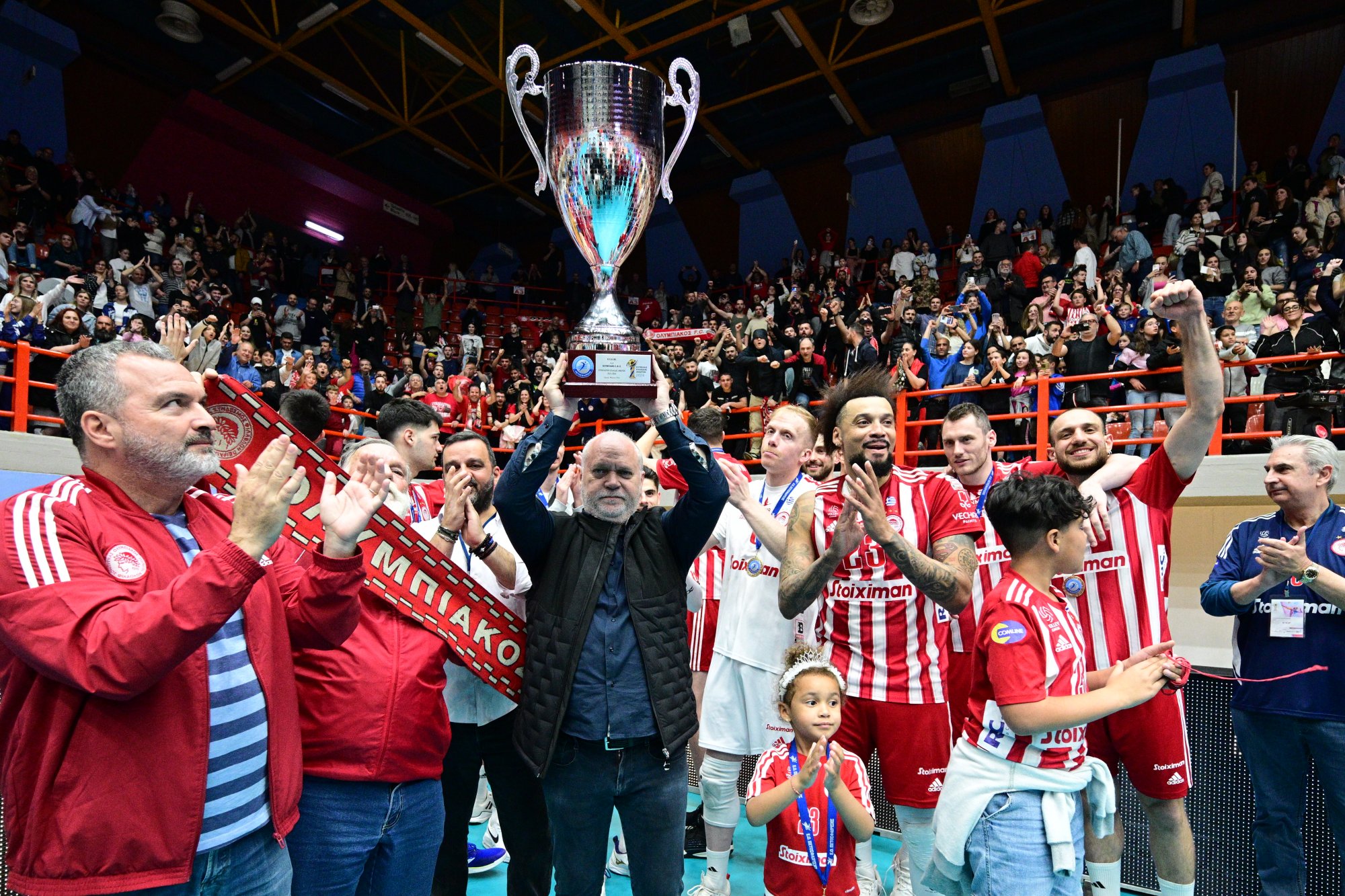 Ο Ολυμπιακός στέφθηκε για 18η φορά Κυπελλούχος Ελλάδας με τον Ντράγκαν Τράβιτσα να σηκώνει το τρόπαιο στον ουρανό του κλειστού της Νεάπολης.