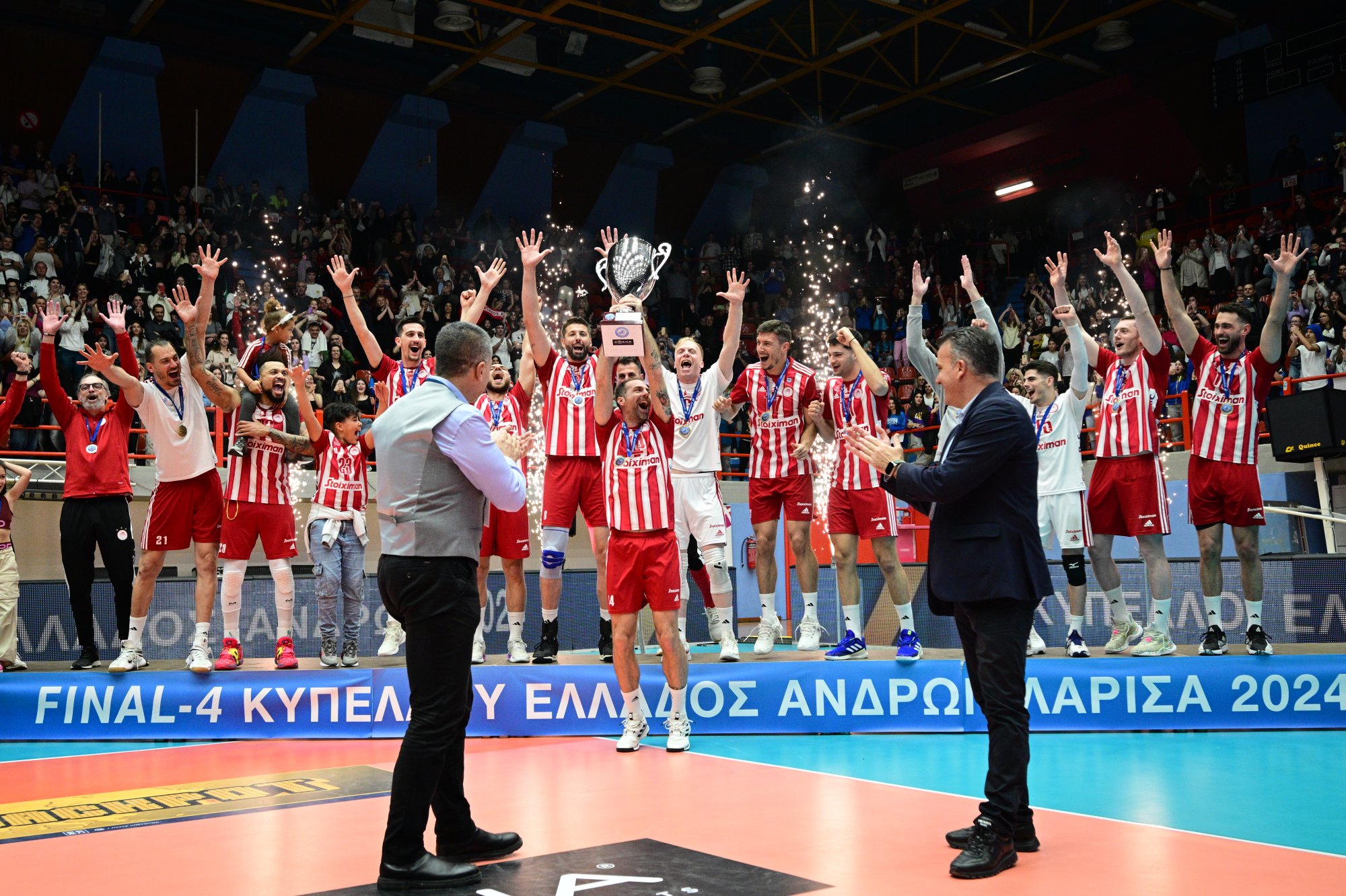 Πραγματοποιώντας μια επική ανατροπή στο «χρυσό» σετ ο Ολυμπιακός επιβλήθηκε με 3-2 του Μίλωνα και στέφθηκε για 18η φορά στην ιστορία του Κυπελλούχος Ελλάδας.
