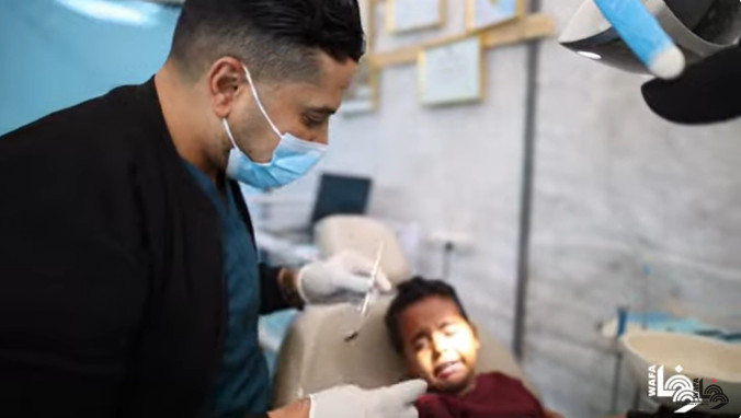 Το WAFA μεταδίδει ότι εν μέσω του συνεχούς θορύβου από τα ισραηλινά πολεμικά αεροπλάνα και τα drones, ο Δρ Νατζντάτ Σακρ έχει μετατρέψει μια σκηνή στην καρδιά του προσφυγικού καταυλισμού Νουσεϊράτ στη Γάζα σε αυτοσχέδια οδοντιατρική κλινική, προσφέροντας περίθαλψη σε όσους έχουν ανάγκη.